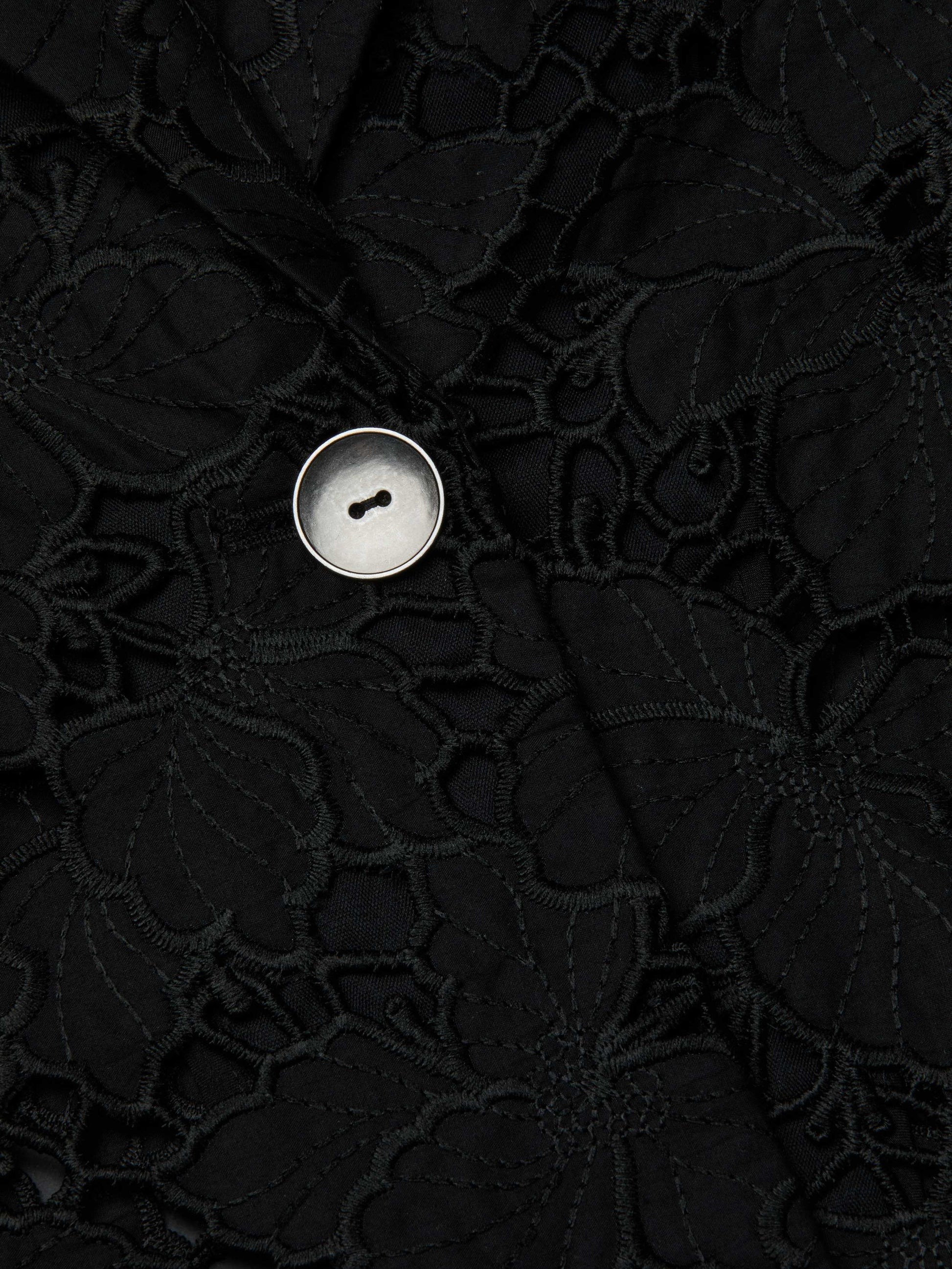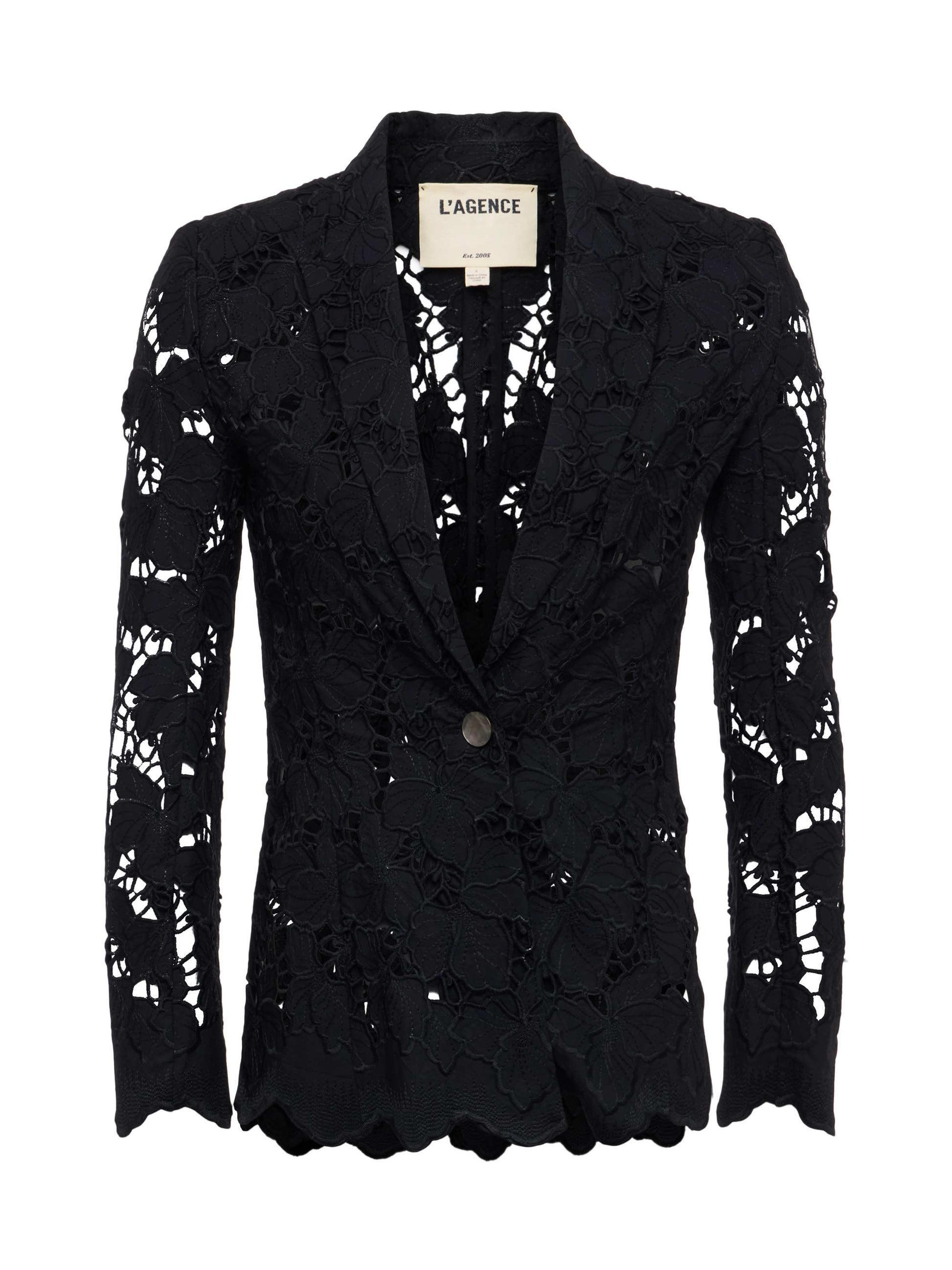 The ultimate single-breasted blazer, now in a romantic floral lace.