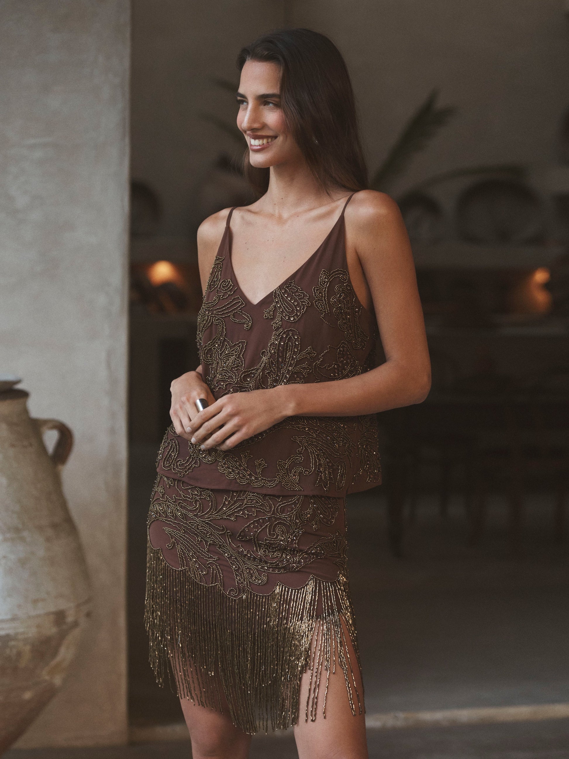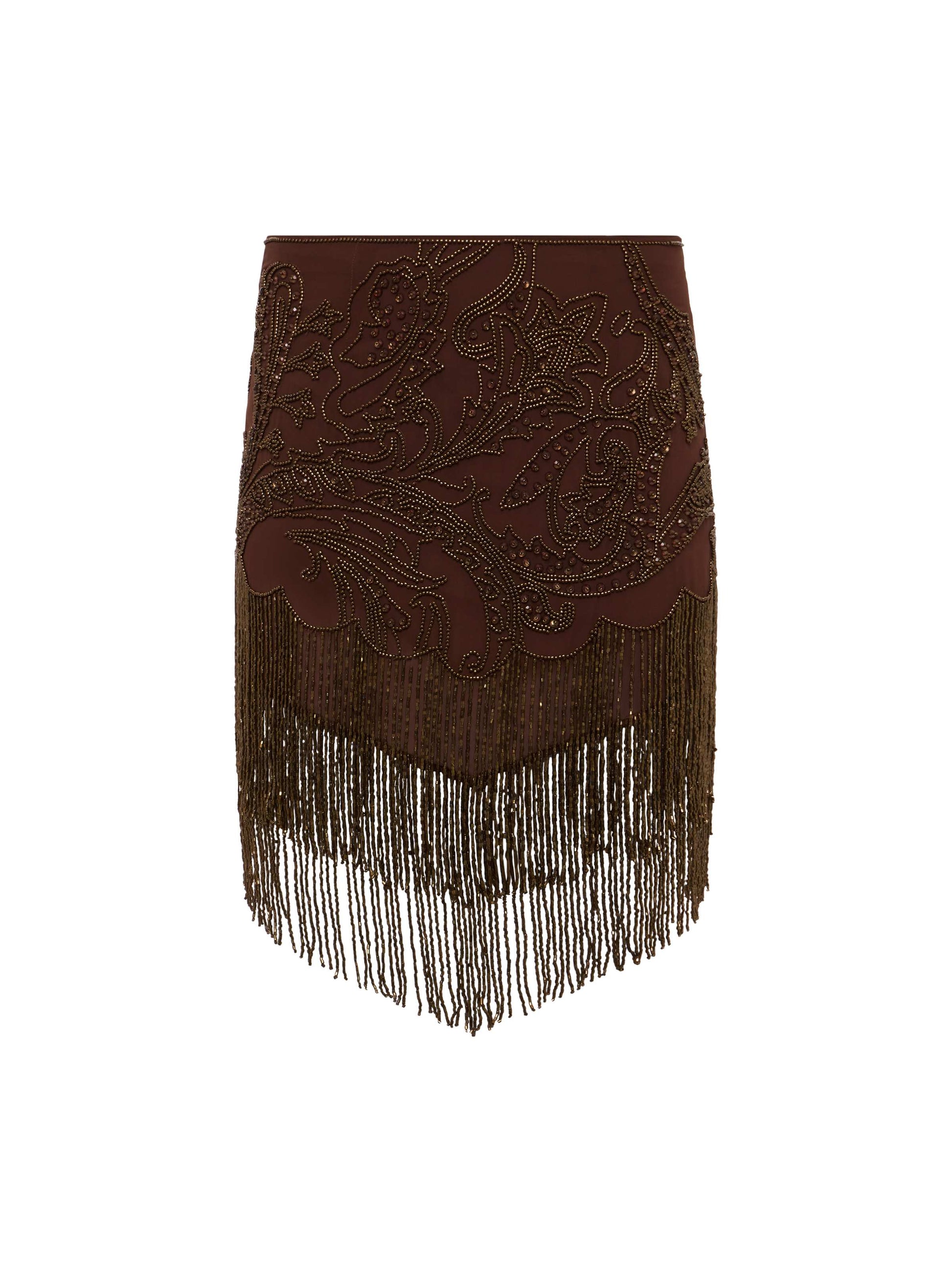 Intricately crafted with a mix of machine and hand-beading, each Eulla skirt requires over 21 hours to complete. Tiers of beaded fringe add sultry movement and a 1920s glamour.