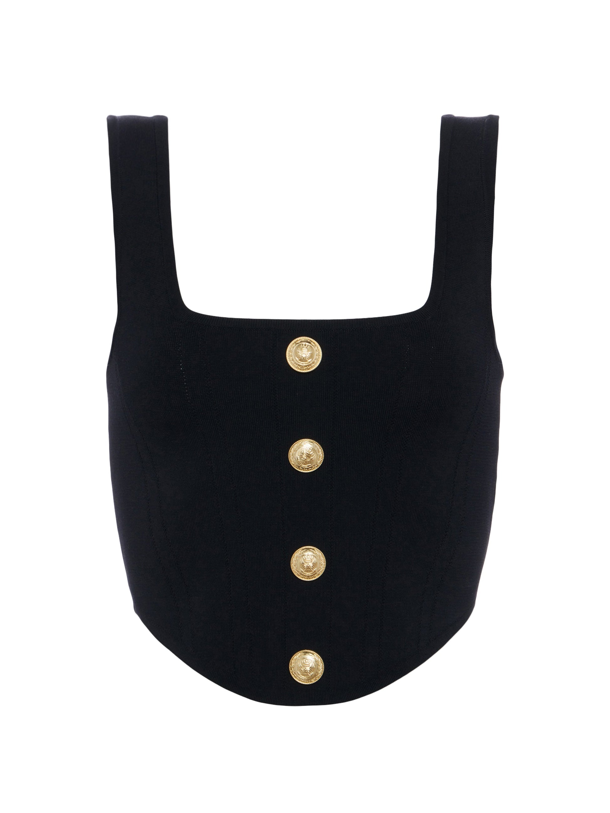 The perfect little something to toss into your summer rotation. The supple ribbed knit of the corset-inspired Saga hugs the figure while offering complete freedom of movement for all-day (and night) wear. Front and back square necklines and our iconic embossed dome buttons add elegance. Dress it down with sneakers or add a sky high heel for evening.